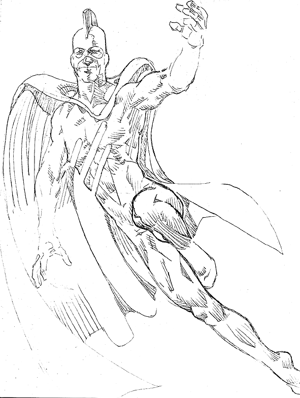 This is a photocopy of the sketch of Captain Photon, the original that I penciled and inked was stolen. .